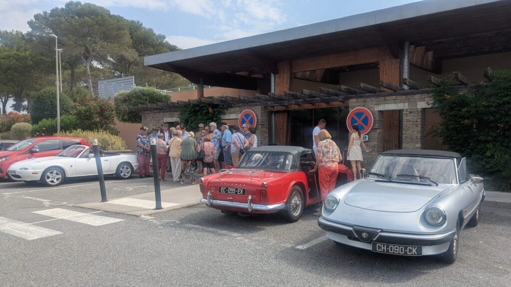Accueillis par Mme Daguet, Adjointe au Maire, en charge des animations, les véhicules sont garés sur le parking des Boules où la Municipalité avait réservé tout un espace dédié au Club.